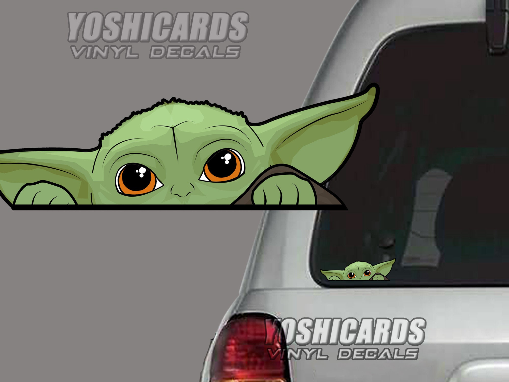 Baby Yoda Car Sticker Grogu Decal Baby Yoda Car Decal Peeking Baby Yoda The Child Car Sticker Mandalorian Car Sticker Baby Yoda SVG SuburbanSpecialties 5 out of 5 stars 263 Sale Price 449 449 499 Original Price 499 10 off. 7 Inch 9 Inch 11 Inch. This listing is for one 1 vinyl die cut decal in the SIZE and COLOR you choose when placing your order.