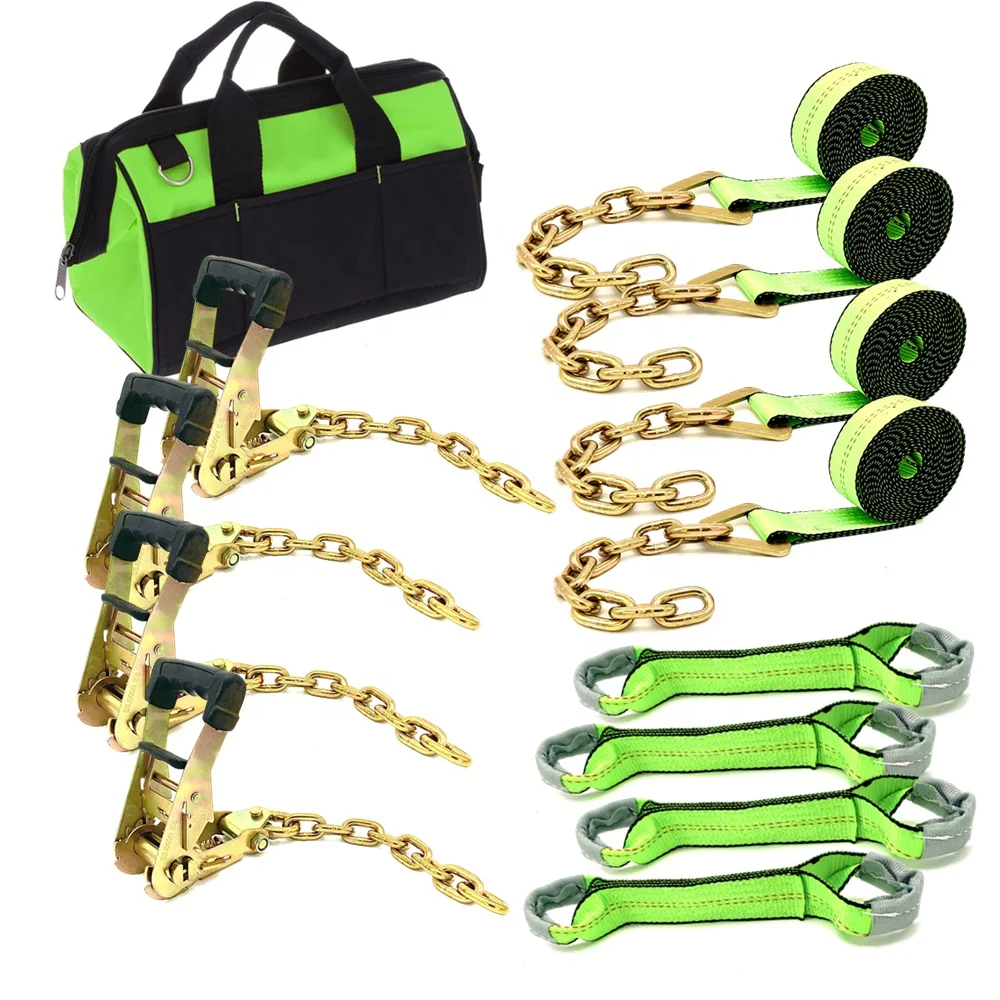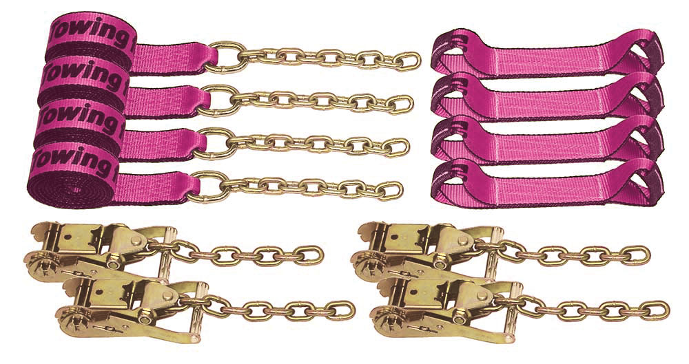 This makes your hand less likely to slip which makes ratcheting safer. The 8 Point Roll Back Tie Down System with Chain Ends is a fantastic product that is perfect for tow truck drivers. This kit comes with four 4 Long Straps with Chain four 4 Ratchets with Chain four 4 Short Straps with Lined Eyes and a convenient storage bag. And is totally adjustable to accommodate any car or small truck. I like what I see am looking into getting a set who has good pricing on them. 2 Inch Hi-Viz 8-Point Tie-Down Hi-Viz 8-point tie-down webbing has a green nylon edge reflective threading and is high visibility yellow for increased visibility on the roadside. The 8-Point Rollback Tie- Down System is easy to install and prevents all four tires from moving back and forth. BA Products HV38-218C Neon Green High Visibility 8 Point Tie Down System with 18 Long Straps and Chains on Ratchets Straps for Rollback Car Hauler Carrier Flat Bed 45 out of 5 stars 27 6 offers from 22011. Since the vehicle is secured by the wheels this allows it to ride on its own suspension.