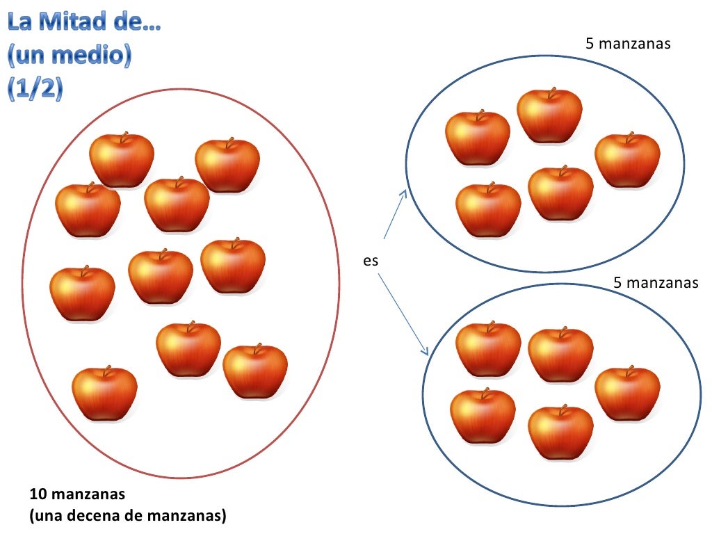 Aquí los pasos correctos para que el resultado sea 3. Tengo diez manzanas si las parto por la mitad. La mitad del número 12 es igual al número o fracción 14. 34 10 558 K. 3 Si te gustó compártelo con tus amigos. La mitad de un número se encuentra dividiendo un número entre 2 descomponiendolo o reduciéndolo de esta manera a su mitad. Si dividimos 12 entre 2 tenemos12. Actividades 1 Observa la siguiente situación y completa. 2 La mitad de 2 es 1 1 2.