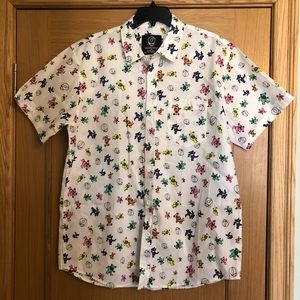 The Grateful Dead shirt Shirt sleeve button up White with rainbow dancing bears and skulls Size large Approx.