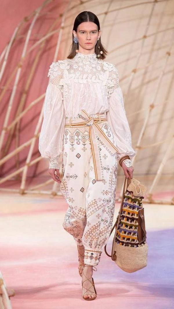 She was raised by two archaeologists and spent much of her childhood traveling. As featured on the SS20 runway pair this top with the brands high-rise embroidered pants to match the runway styling.