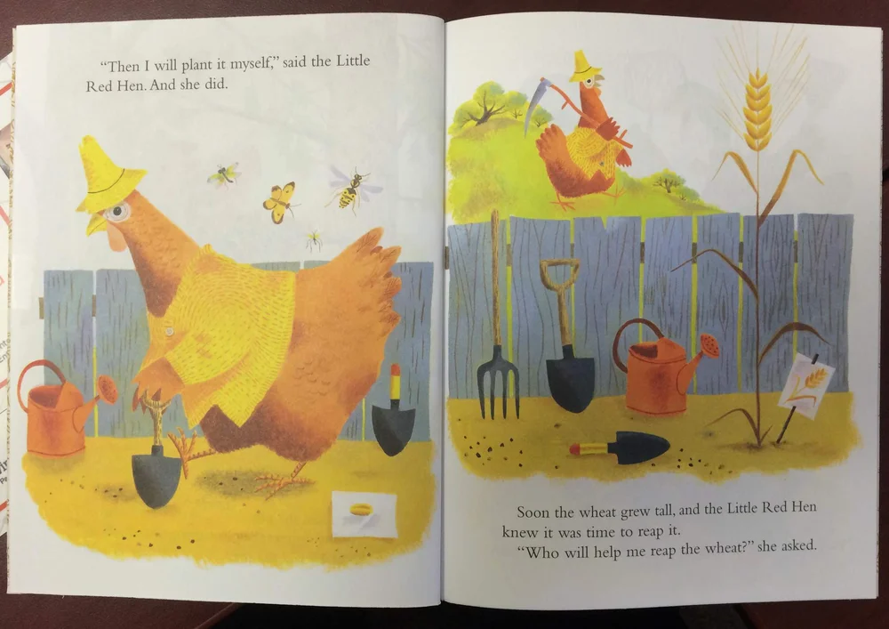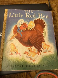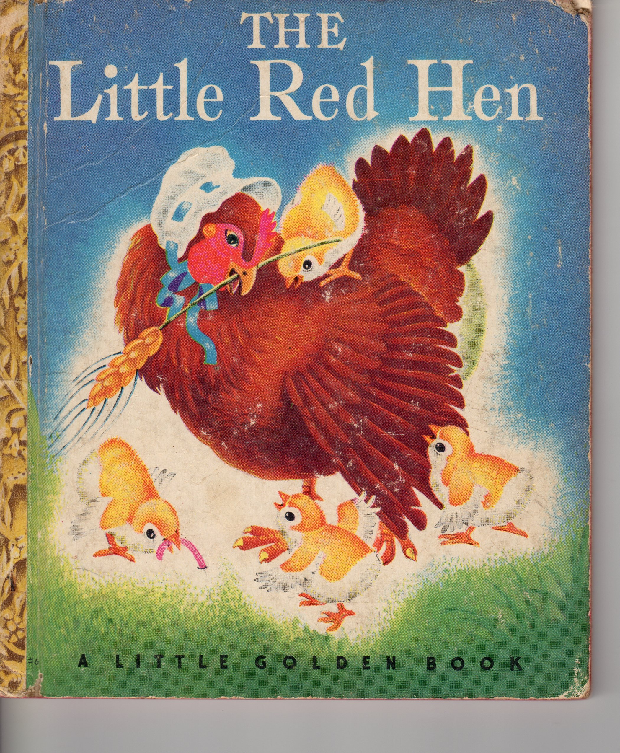 The little red hen little golden book 1942. 1940s animal fable lgb little golden book rudolf freund. Fable fiction 192 words Level G Grade 1 Lexile 340L. The front cover shows a mother hen with spade in hand ready to plant her seed.